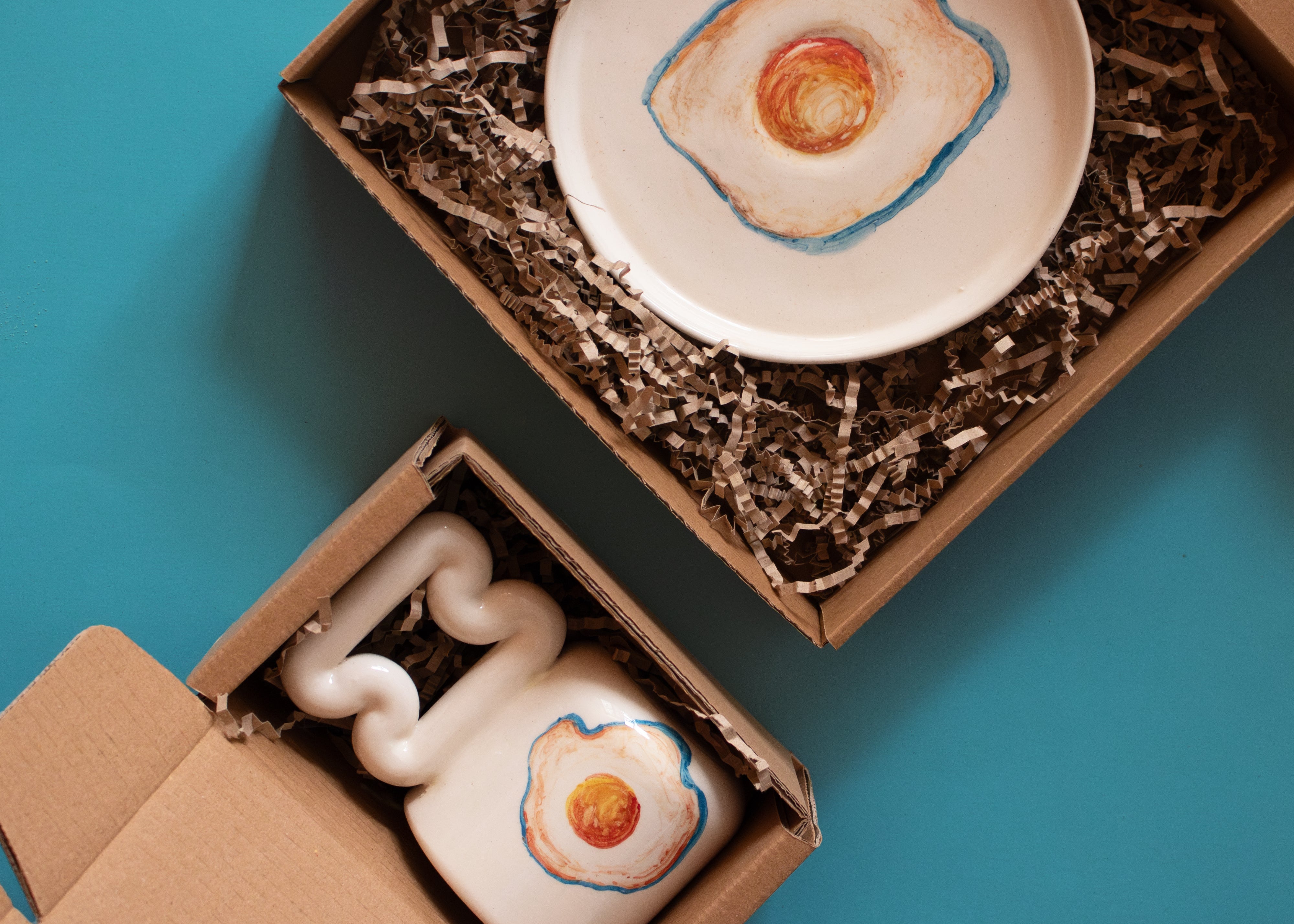 Gün batımı tonlarında el yapımı porselen kupa -